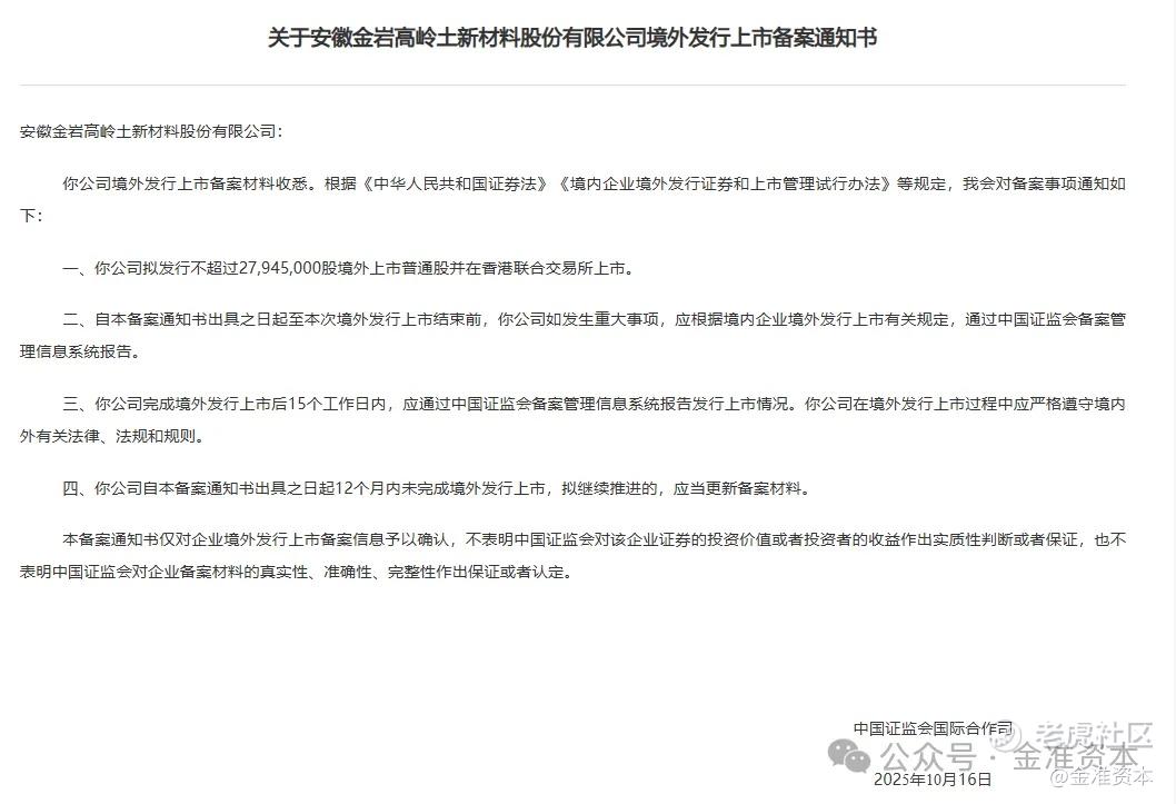 1,关于安徽金岩高岭土新材料股份有限公司境外发行上市备案通知书