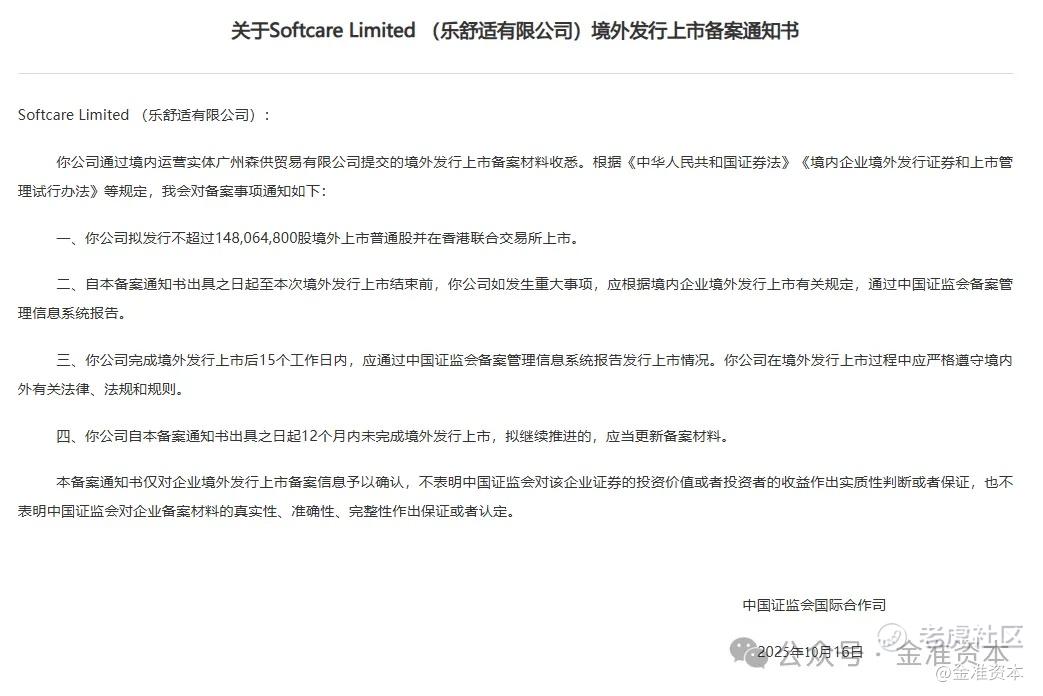 2,关于Softcare Limited (乐舒适有限公司)境外发行上市备案通知书