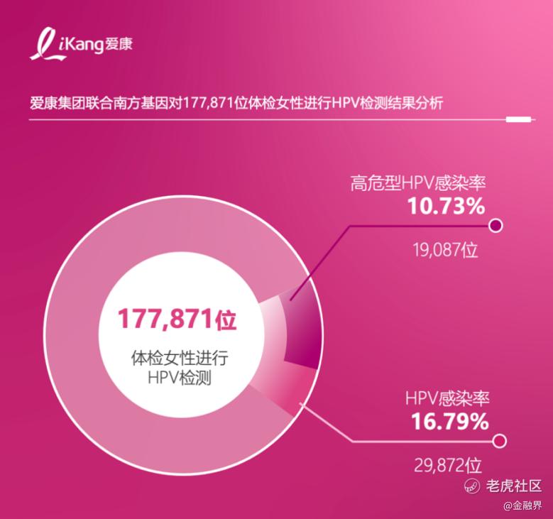 除乳腺癌外,宫颈癌和卵巢癌也是暗藏在女性身边的“沉默杀手”。宫颈癌更是中国女性最常见的妇科恶性肿瘤之一,位居中国女性癌症新发病例TOP5①。高危型人乳头瘤病毒(HPV)持续感染是其主要病因。粉红报告显示,2023年3月1日到2025年8月15日,爱康集团联合南方基因对177,871位体检女性进行了HPV检测,其中29,872人(16.79%)感染HPV,10.73%为高危型HPV感染。