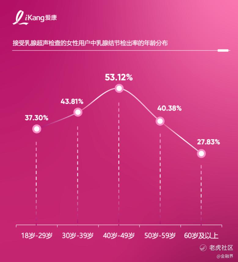 随着年龄的增长,乳腺结节的检出率呈现先升后降趋势。其中,上有老下有小的40岁-49岁女性,成为检出率最高的年龄段,高达53.12%,可能与这一年龄阶段女性体内激素水平的显著波动有关。