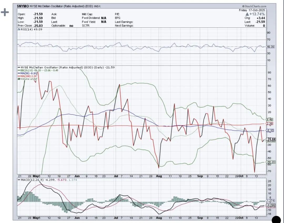 3. NYMO:NYSE McClellan Oscllator用纽NYSE的上涨家数和下跌家数来判断市场(1)计算(上涨家数-下跌家数)的19日和30日指数移动平均;(2)绘制(19日指数平均-39日移动平均)的计算结果