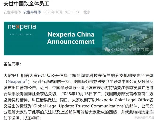 安世中国致全体员工:国内全部主体运营及员工薪资福利一切正常