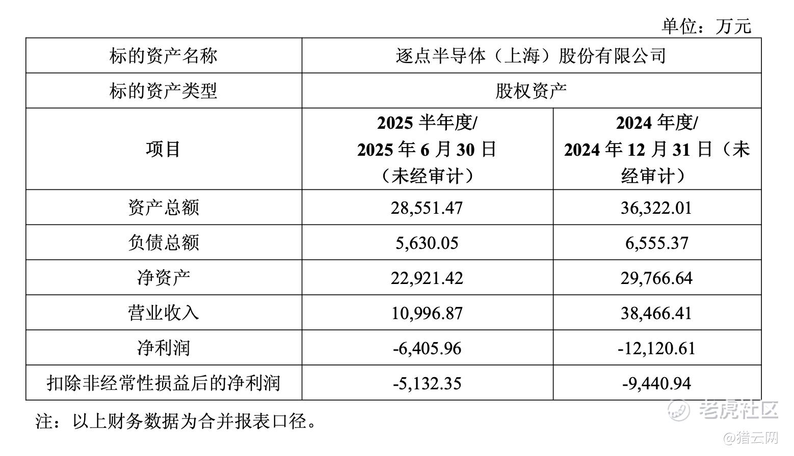 芯原股份发布的并购公告显示,逐点半导体近两年未实现盈利。2024年及今年上半年,该公司营业收入分别约3.85亿、1.10亿元;净亏损为-1.21亿、6405.96万元。