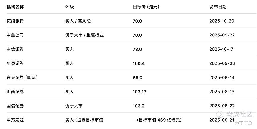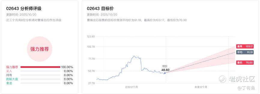 简单翻了下,貌似曹操半年报后,各大知名券商都覆盖了,截止10月20日,8位分析师覆盖,评级都是强烈建议买入,最高目标价103.17港币,平均91.19港币,最低70港币,以下沿来看,溢价依然高达44%。
