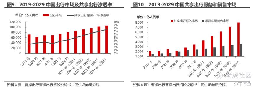 乘客端来看,城市化、日常通勤有替代私家车需求、以及新能源车型普及,网约车的渗透率和交易频次有结构性提升,民生证券给的数据看,共享出行服务市场渗透率预估在2029年达到8%水平,不足10%。