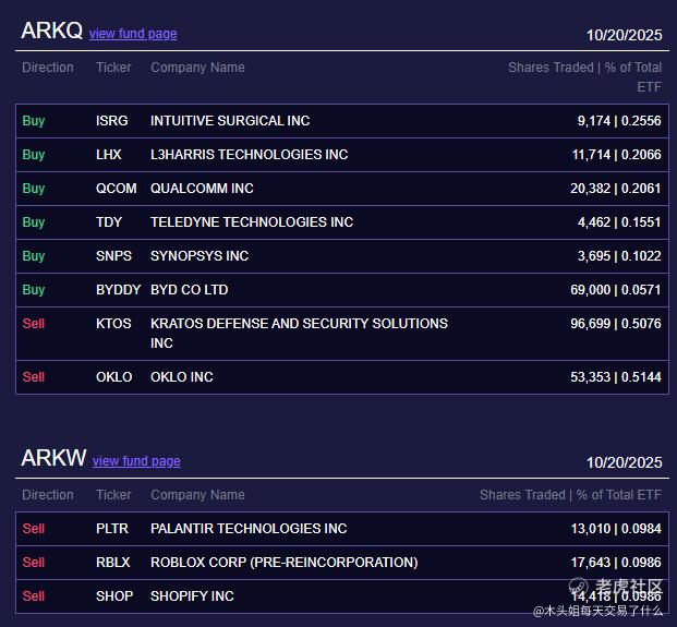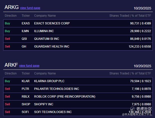 卖出850万美元OKLO、850万美元GH、840万美元KTOS、390万美元SOFI、370万美元PLTR、360万美元RBLX、370万美元SHOP,基本都是在昨天普涨的行情下做减持。SOFI是我最近关注的一支股,后续看看有没有机会买点。