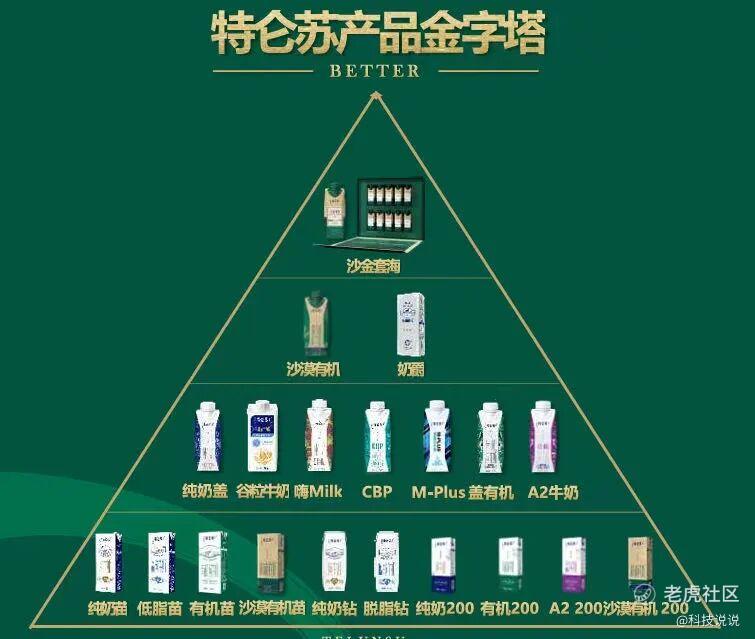产品从“纯牛奶”到“有机奶”、从“有机奶”到“沙漠有机”,包装也从“苗条装”到“梦幻盖”,从“梦幻盖”到“植物基盖”。特仑苏不断加速创新迭代,满足更多的消费需求。上个月,特仑苏还推出了“沙金套海沙漠有机”产品,以更为稀缺的沙漠原生自然禀赋,成为了这个金字塔的顶端产品。
