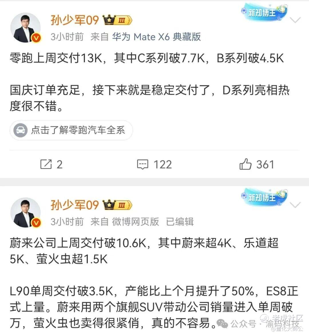 汽车博主孙少军最新发的周度数据更直观:上周蔚来全系交付 1.06 万辆,其中乐道 5000 + 辆、蔚来 4000 + 辆、萤火虫 1500 + 辆,三个品牌各有各的活法,凑在一起就是 “1+1+1>3” 的效果。之前大家担心多品牌会 “内耗”,现在看是多虑了 —— 蔚来主品牌守高端、乐道攻主流、萤火虫抓年轻群体,每个品牌都精准踩中细分市场的需求,这种 “协同效应” 比单一品牌冲销量靠谱多了,也更有持续性。