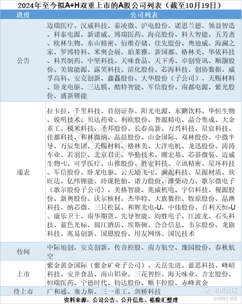 上周就有汉威科技、迈瑞医疗、泰凌微等公司公告赴港上市,拉卡拉、首创证券、千里科技等公司递表港交所,赛力斯、三一重工、剑桥科技通过聆讯。(完整版A+H表格见文末)