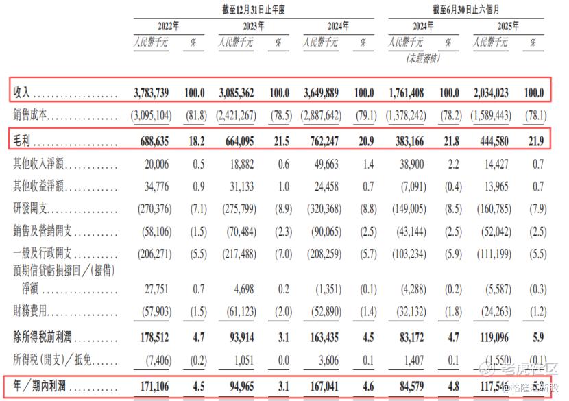 2022年、2023年、2024年和2025年1-6月(报告期),公司的总收入分别为37.84亿元、30.85亿元、36.5亿元、20.34亿元,净利润分别为1.71亿元、9500万元、1.67亿元、1.18亿元。