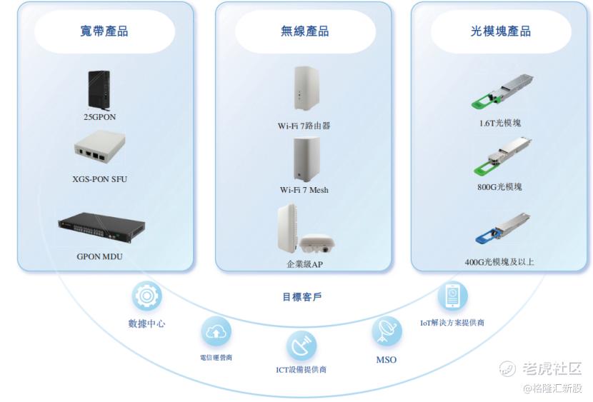 无线产品方面,公司的产品组合包括用于家居及小型企业的非授权频谱Wi-Fi产品,及授权频谱应用(如移动服务及广播)的小基站产品。
