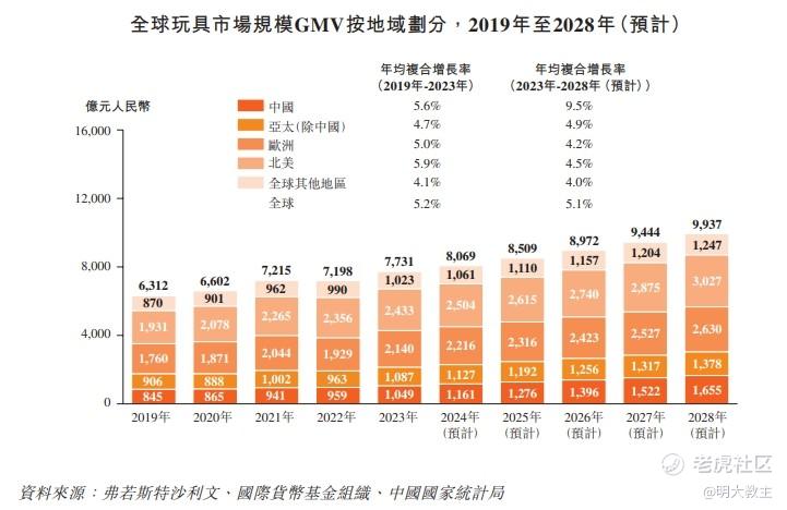 弗若斯特沙利文在某公司IPO报告中给出的数据显示,我国整体玩具行业市场规模2019至2023年年化增长率达5.6%,至2028年行业年化增速有望提升到9.5%。