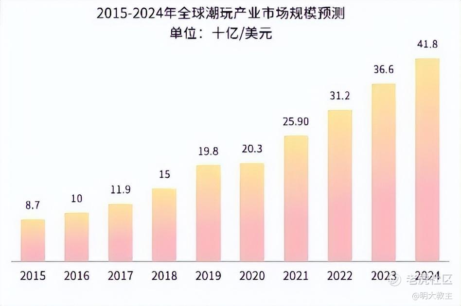 Business research统计,全球潮玩市场规模由2015年的87亿美元增至2024年的418亿美元,年化复合增速19.1%。