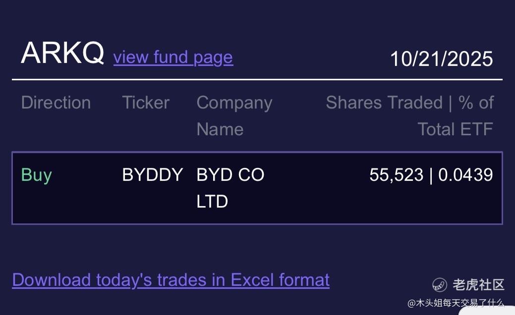 木头姐今天买入73万美元比亚迪,不知道是不是有什么内幕消息,连续两天买入。前段时间木头姐加仓的百度近来表现不佳,跌幅-2.98%。大家不要盲目抄作业,你我都是小散户,资金量有限,最好要有自己的投资思维。
