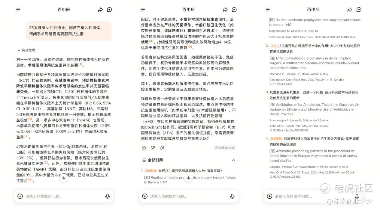 除了需要高效地辅助临床决策,医生还开始面对新的挑战:患者用DeepSeek自诊和带着DeepSeek就医的现象越来越多。虽然知道大模型可能有幻觉和偏颇,但没有时间和精力去甄别哪句对哪句错。通过百小应,医生有了面对通用模型挑战的“专属武器”。