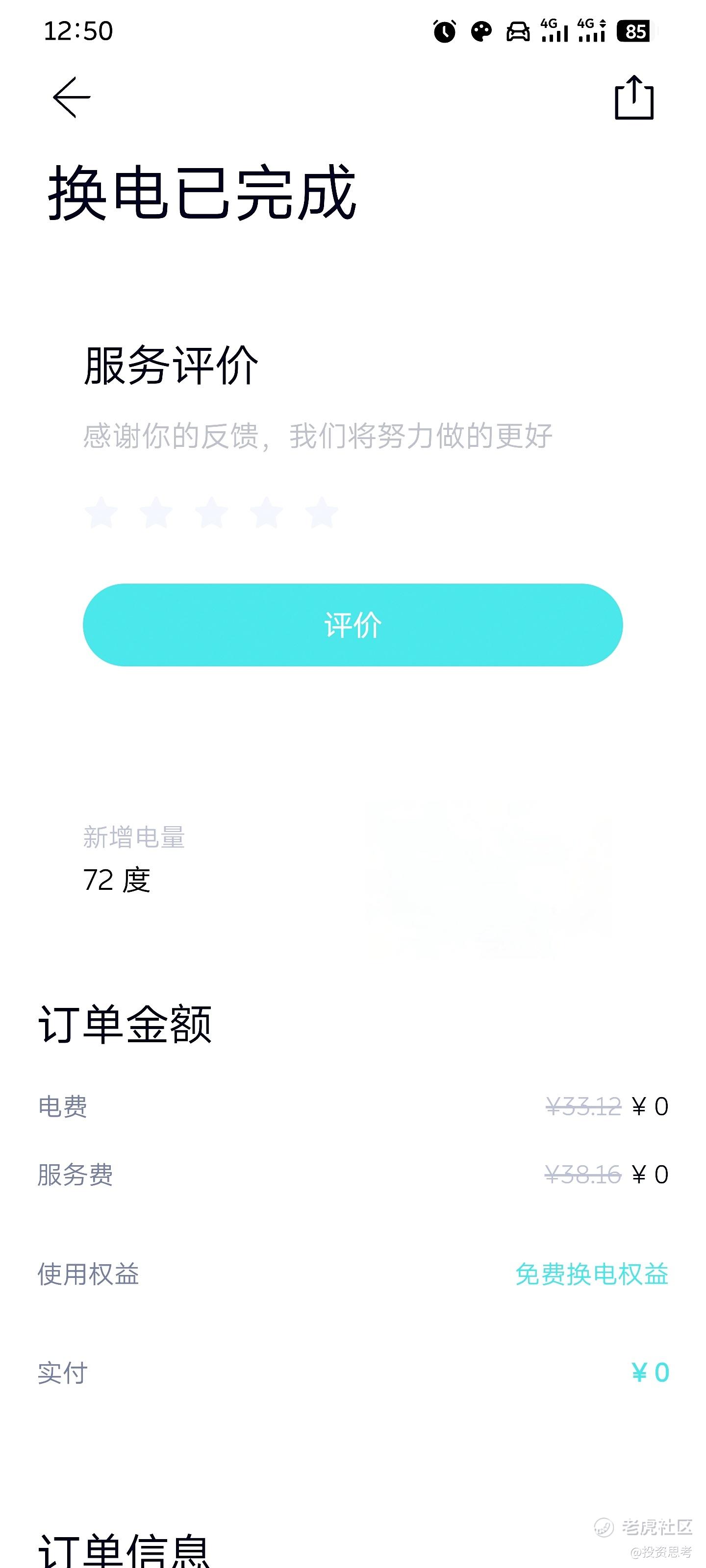 $蔚来(NIO)$ 兄弟们,破案了,换电换到一块100的满电电池,正好我是用到0,换了72度电,所以藏电3度,百公里20能耗来算的话,可以跑15公里,极限情况下,大家可以参考[呲牙][耶]