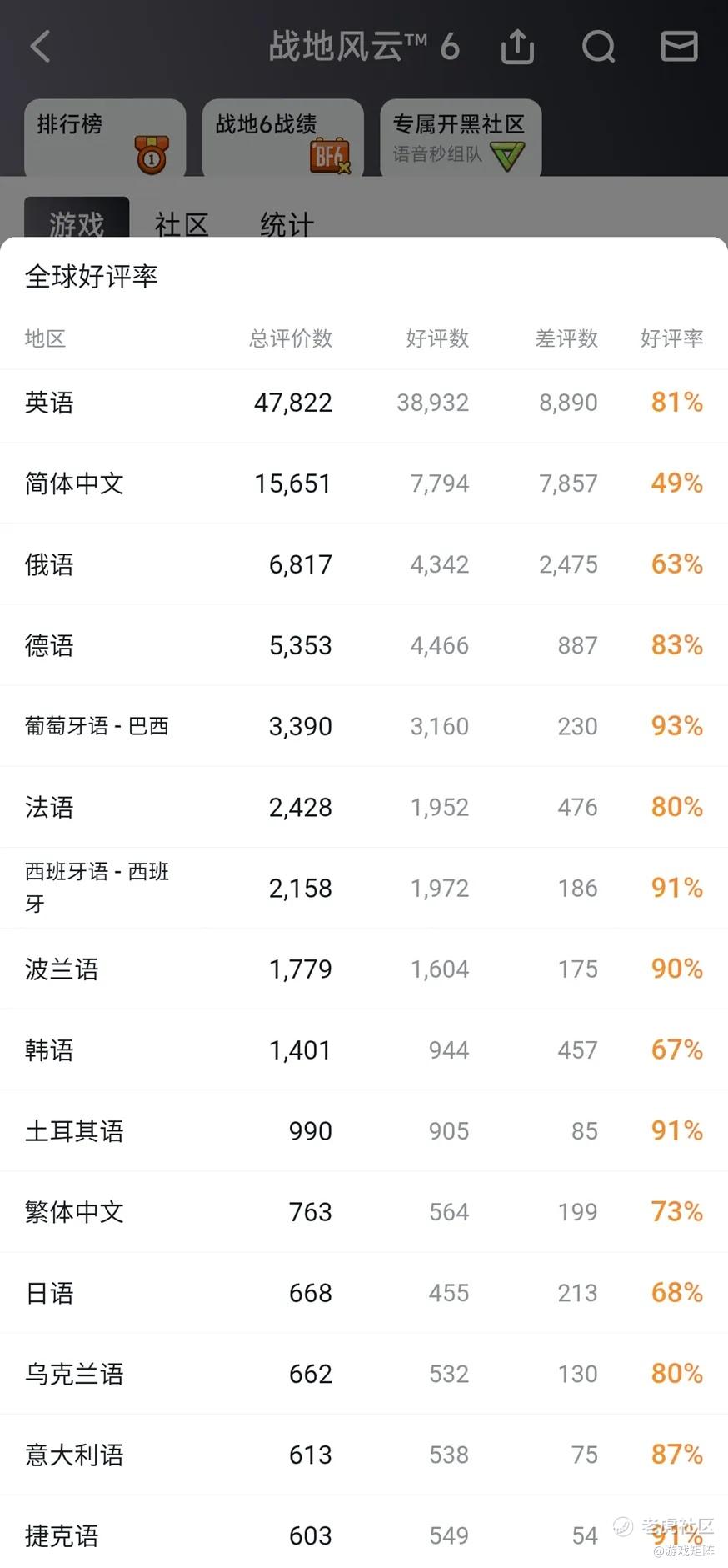 不过至少从目前的市场反馈来看,这作绝对不算翻车,除了国区玩家最为严厉外,大部分地区好评率都在80%以上。