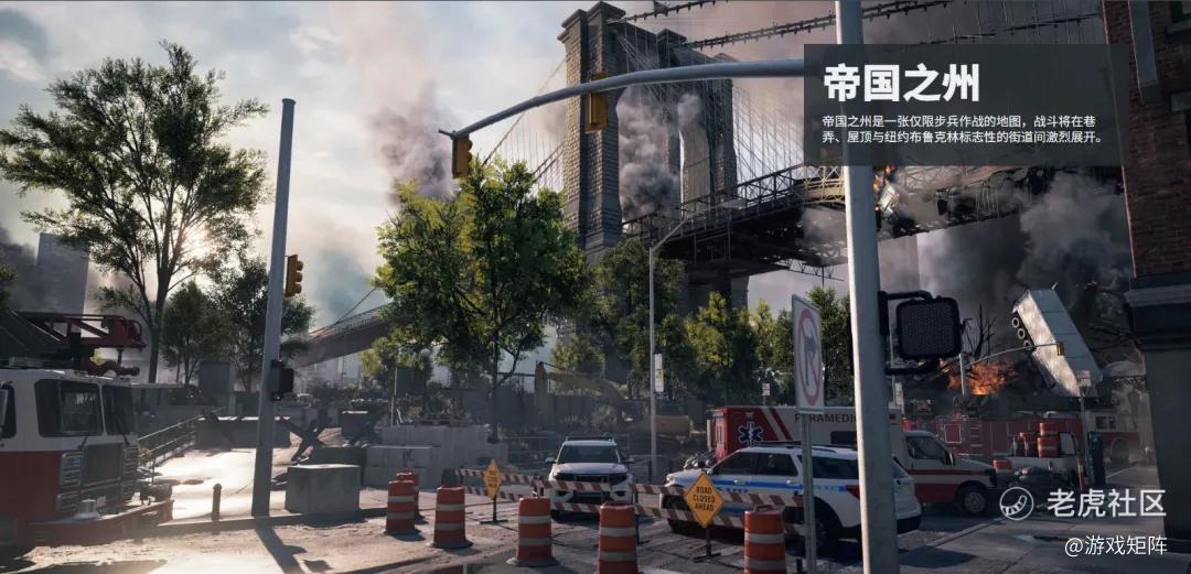 而这一代的步战地图规模普遍偏小,交战节奏非常快,更注重巷战、室内近距离战斗和垂直层面的交锋。例如帝国之州这张街区地图,室内往往是上下3层的贯通设计,其中心大楼的回廊区域四面透风,加之玩家普遍较短的TTK,交战密度大幅上涨。