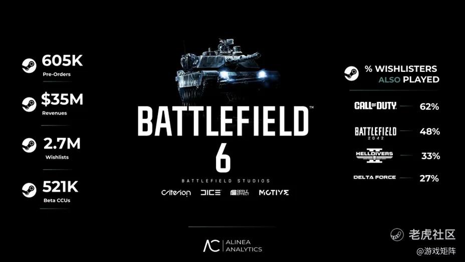 有意思的就来了,据外媒统计,在将《战地6》加入愿望单的玩家中,有6成玩家都玩过使命召唤,其它的还包括《绝地潜兵2》、《三角洲行动》等游戏。