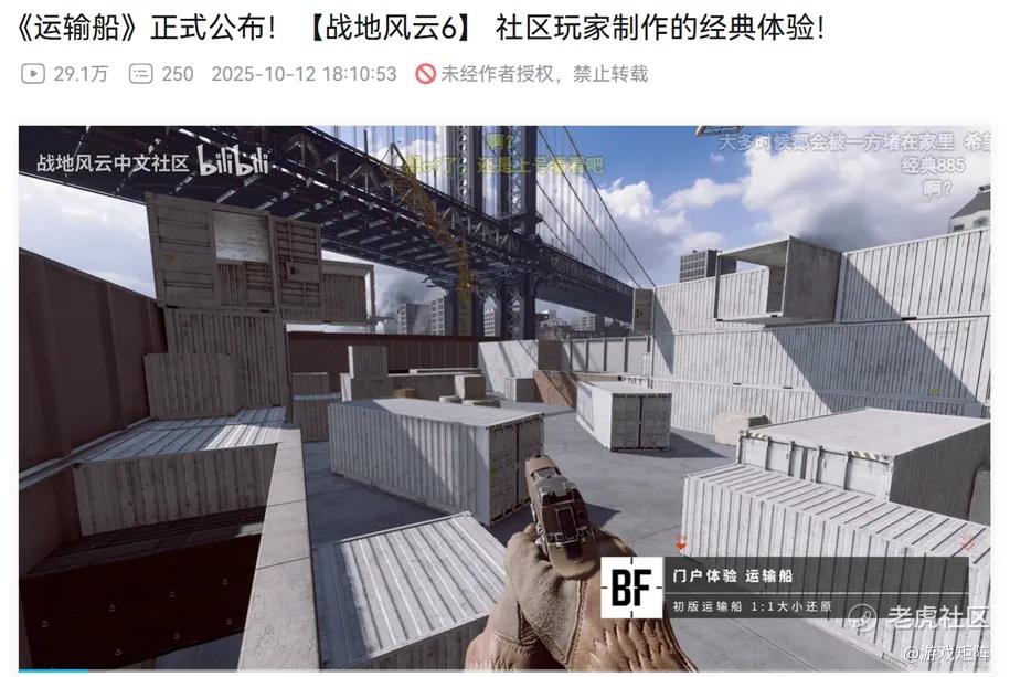 要重新赢得玩家的信任,他们这次还十分重视社区打造。这代门户模式的回归为游戏提供了一个相当高的上限,它相当于一个UGC模式,可自由编辑模式、地图等要素。正式发售两天后,就已经出现了一些其它FPS游戏中的经典地图,CF里的运输船、《使命召唤4》里的经典地图“核电站”,甚至CS里的炙热沙城2。还有飞机竞速、守波次之类的娱乐模式也都在这个模式中出现。