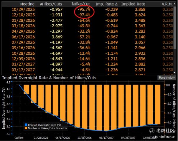 图表:美联储降息一致预期,来源:彭博,10月20日