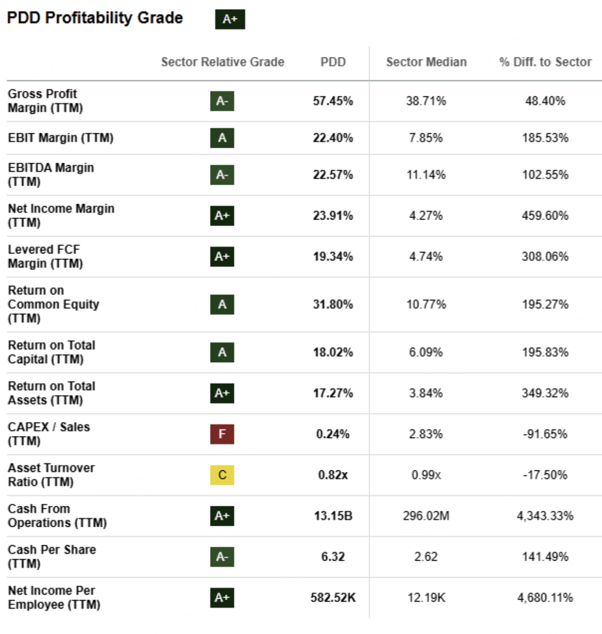 更值得注意的是,拼多多的估值依然不贵。它的Forward P/E只有13倍,远低于行业平均的17倍,而利润增长远高于行业平均。换句话说,它是一家盈利高速增长、估值仍被低估的公司。
