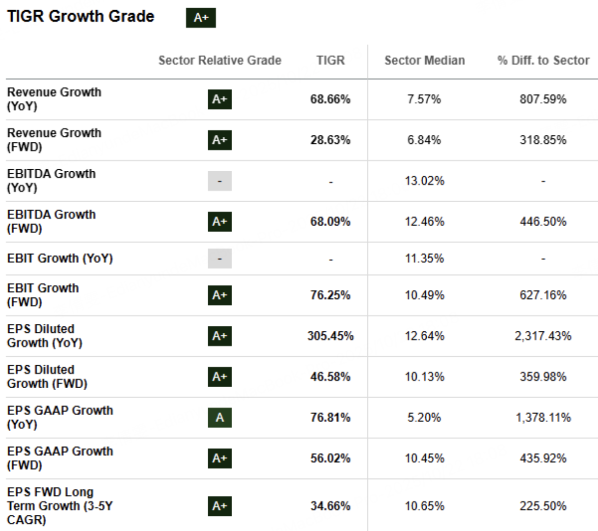从估值看,TIGR目前的Forward PEG仅为行业平均的三成,市现率比同类券商低90%。换句话说,它是一家利润增长快、现金流稳定、估值却仍然在“打折”的公司。对于喜欢“低估+成长”的投资者,老虎正是一只“以小博大”的典型标的。