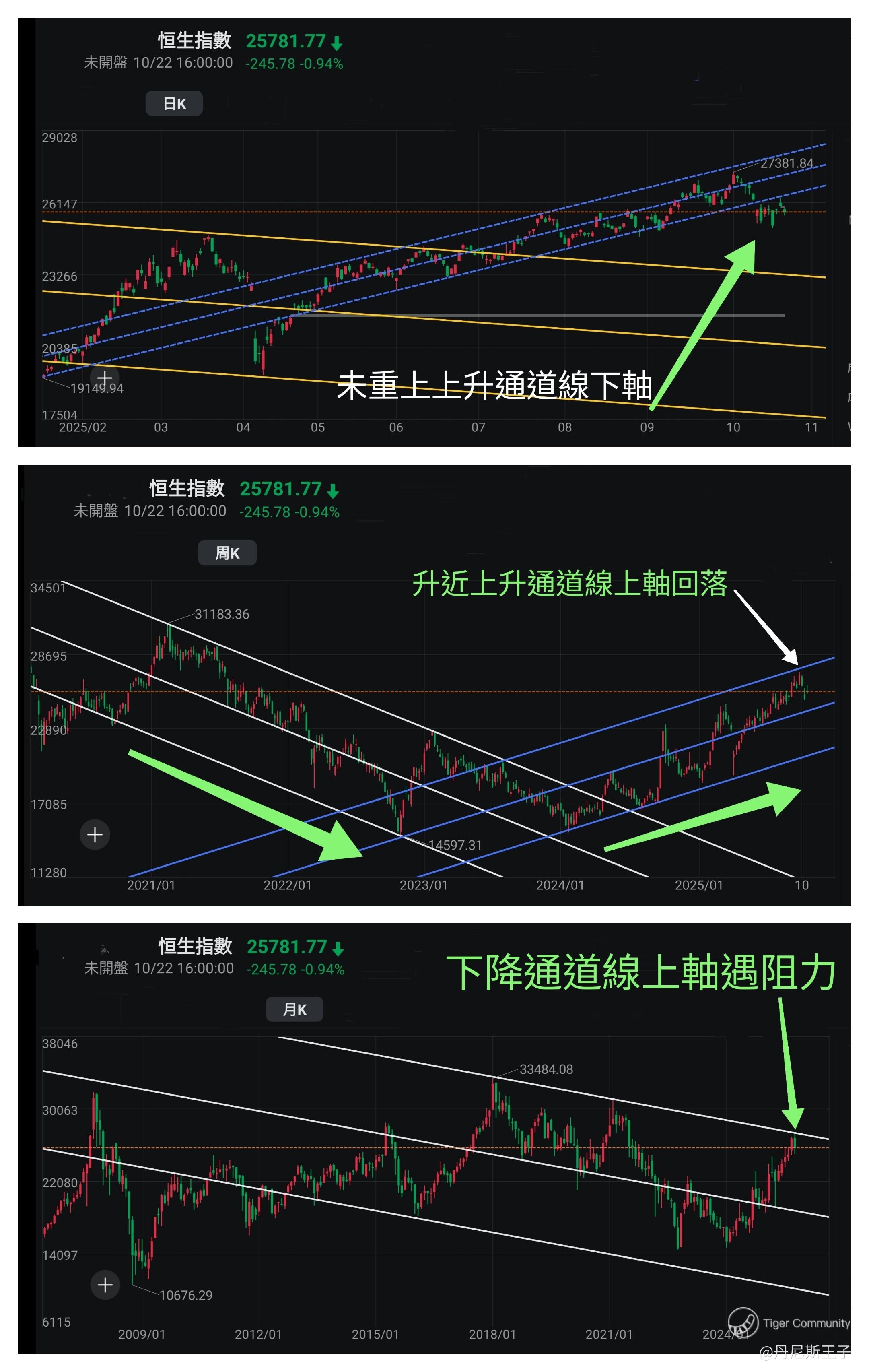 恒生指数(日线图、周线图、月线图) 通道线图: