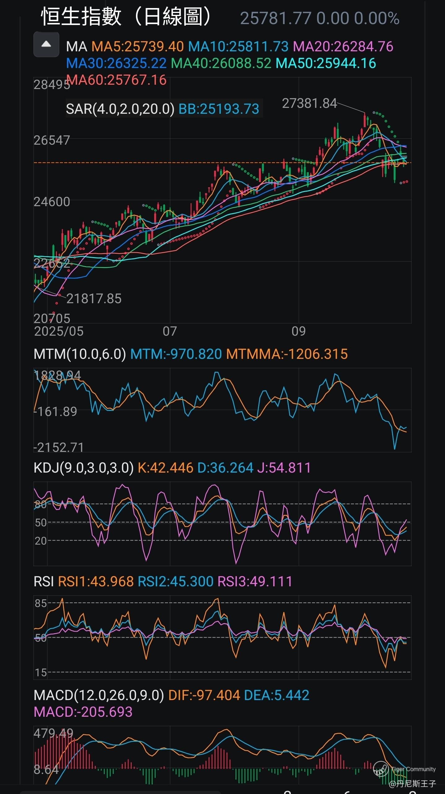 $恒生指数(HSI)$ 收报25781.77点,下跌245.78点,跌幅0.65%