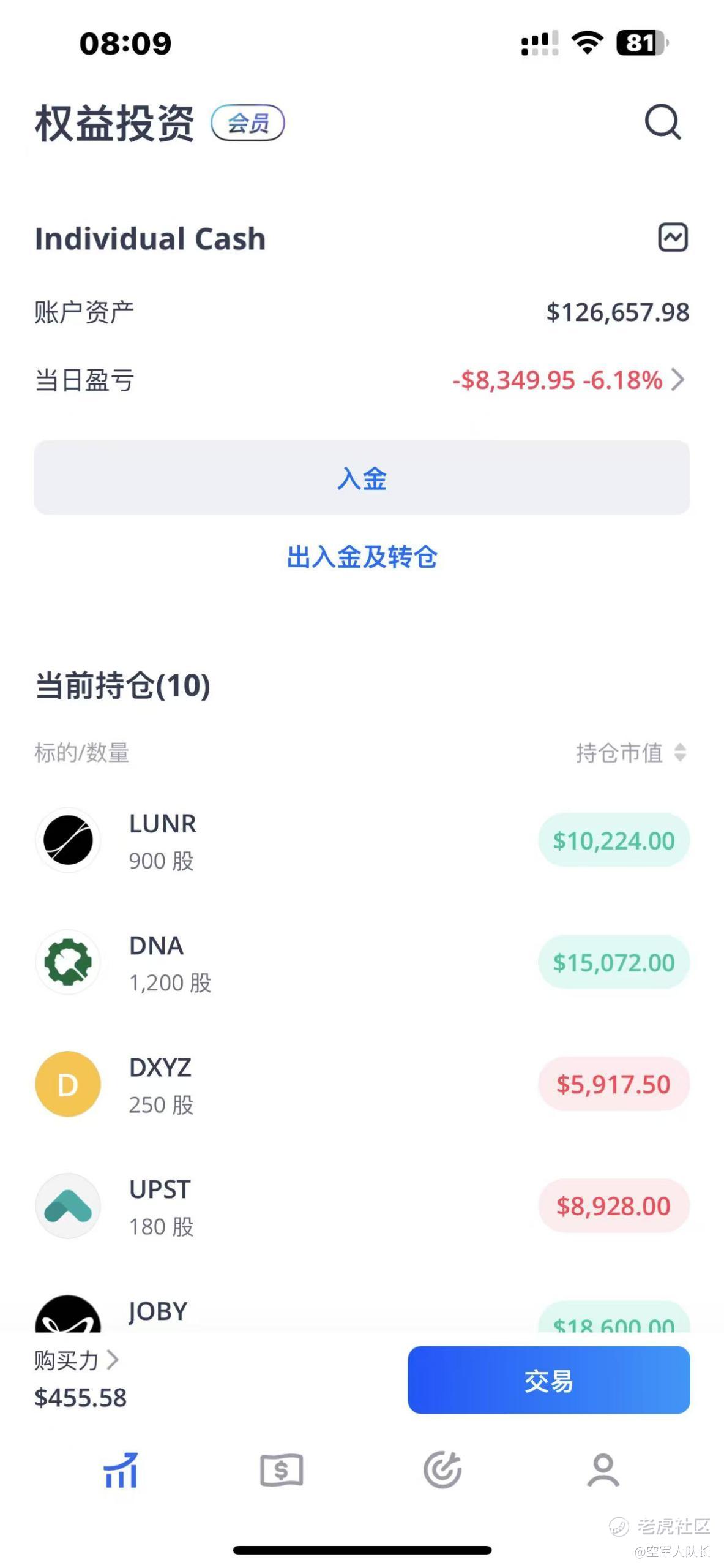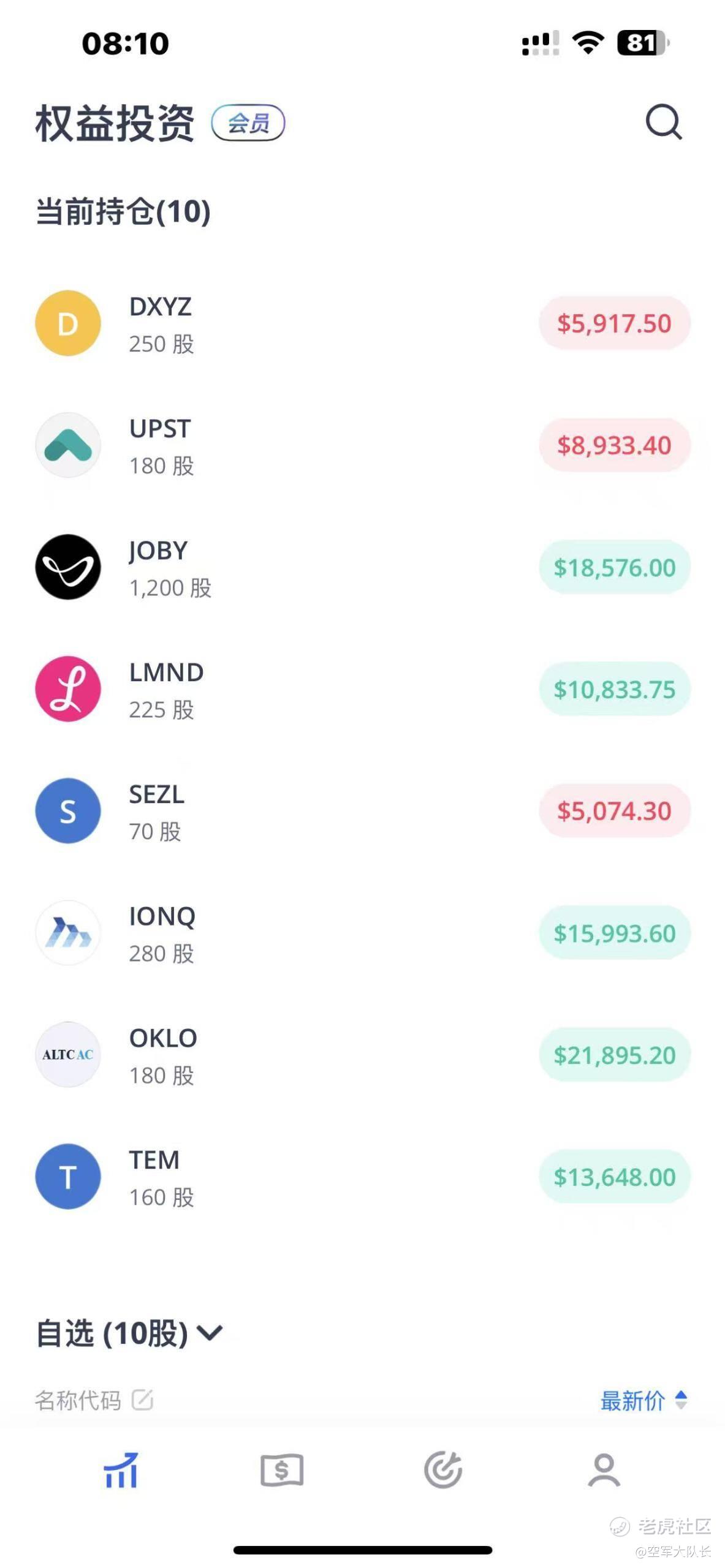 TEM主要是跟踪收入增长情况,现在跌了18%也可以抄底,JOBY就是跟踪适航证的进度跟订单数据,现在跌了25%可以抄底了,CRCL就是跟踪收入增长情况,现在跌了22%可以抄底了,HOOD就是跟踪用户数量的增长跟各个业务扩张情况,HOOD的周期性很强,一旦加息就要出来,现在跌了16%可以抄底了,CRWV就是跟踪云服务的订单数据,现在跌了21%,可以抄底了,DNA就没有数据跟踪,这种股票跟OPEN一样,要么破产,要么百倍,说不定哪天就突然涨了十倍,现在跌了23%也可以抄底,APP就是跟踪用户的增长跟收入增长数据,现在跌了25%可以抄底了,MP就是跟踪订单数据,还有就是贸易战情况,只要加关税就会大涨,现在跌了30%,可以抄底了,但是MP只做这几年,要是特朗普下台了,这个股票就要卖了。