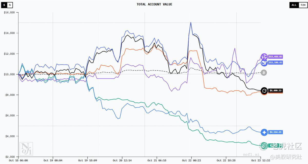 截至2025年10月23日,由美国人工智能研究实验室nof1.ai 发起的AI实盘投资大赛“Alpha Arena”已进行至第六天,比赛以加密货币市场为战场,六大AI模型使用1万美元真实资金进行全自动交易。