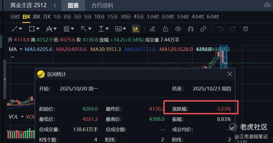 这波黄金下跌,跌幅大吗?其实从期货来看,这波下跌从最高点到现在也就跌了3%。