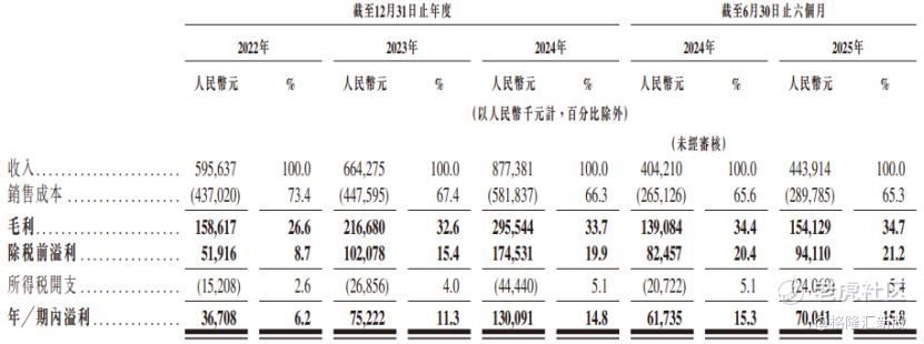 值得注意的是,2022年至2025年上半年,公司向经销商销售产生的收入占同期总收入的比例从95.2%降至55.1%,而向零售商直销产生的收入占同期总收入的比例从3.5%上升至43.2%。