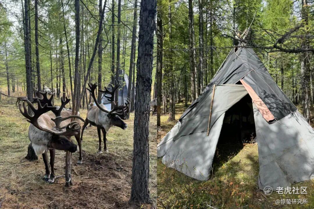 *人工养殖的驯鹿和木帐篷(受访者供图)