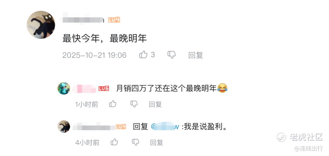 蔚来经典名梗“最快今年,最晚明年”也有了新的诠释。在分析蔚来盈利意义的视频下,网友留言“最快今年,最晚明年”,有人质疑蔚来月销快四万了还在说这个最晚明年。结果网友解释,自己是说蔚来最快今年,最晚明年盈利。