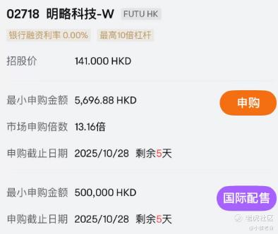 公司10月23日开始招股,招股价141港元,每手股数40股,最低认购5696.88港元,市值203.57亿港元,发行数量721.9万股,属于应用软件行业,有绿鞋。