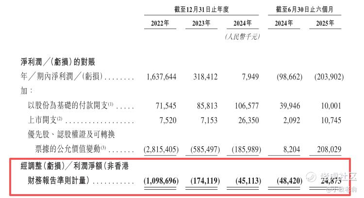 按非香港财务报告准则计算,加回以股份为基础的付款开支、上市开支和优先股认股权证及可转换票据的公允价值变动等费用,2024年经调整净利润是-4511.3万,亏损同比在收窄,2025上半年经调整净利润2487.3万,同比扭亏为盈。