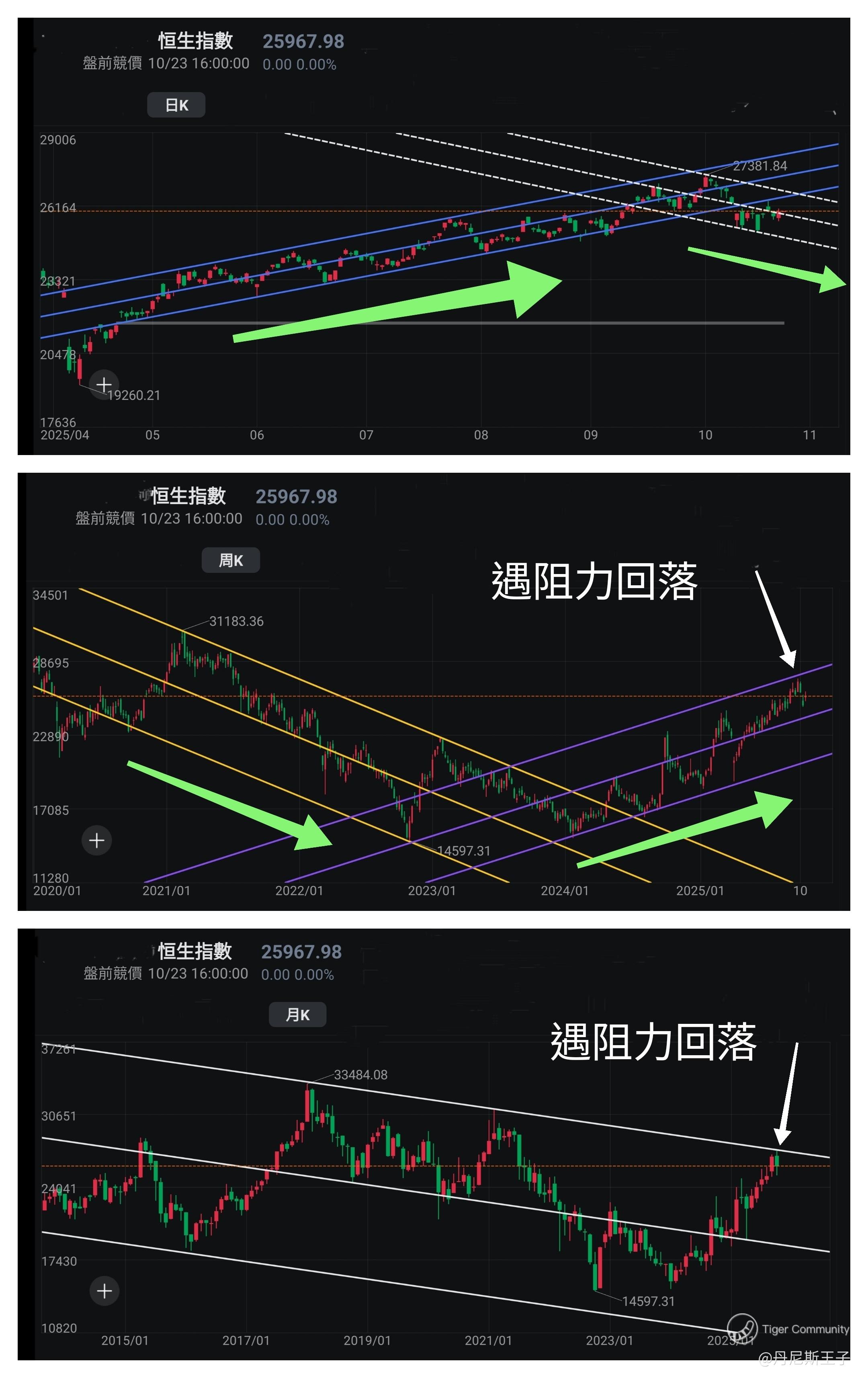 恒生指数(日线图、周线图、月线图) 通道线图: