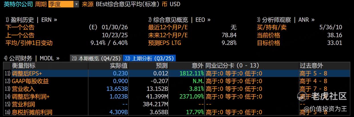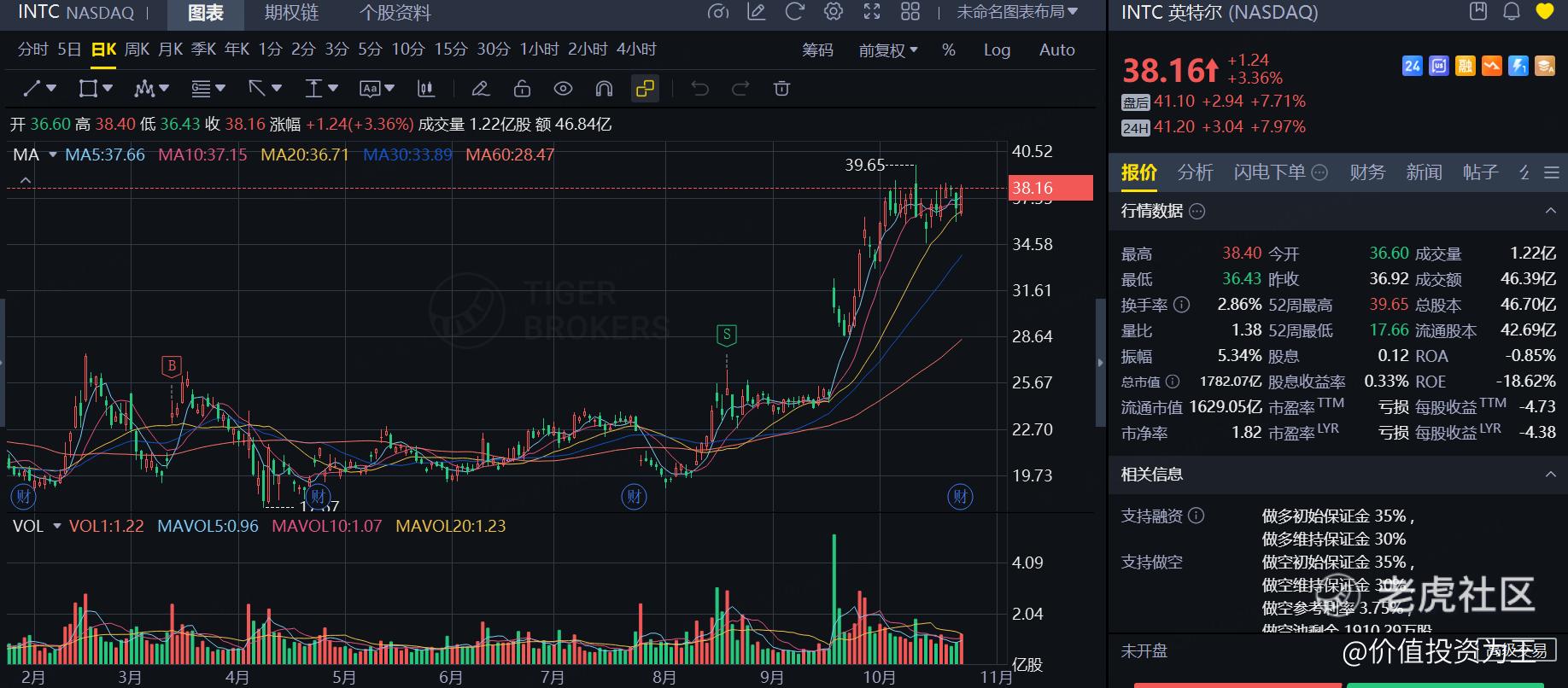昨晚,英特尔公布了三季报,大超预期,盘后股价涨了7.7%: $英特尔(INTC)$