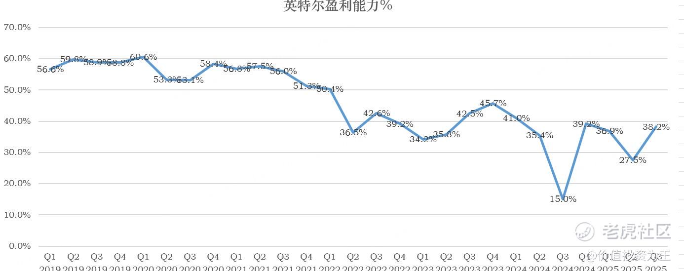 总的来说,英特尔三季度业绩不错,毛利率端也随之回升,三季度达到38%: