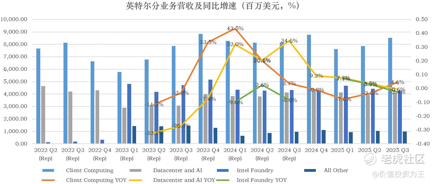 数据中心方面,英特尔亦从AI趋势中获益,传统数据中心对CPU的需求有所回升。