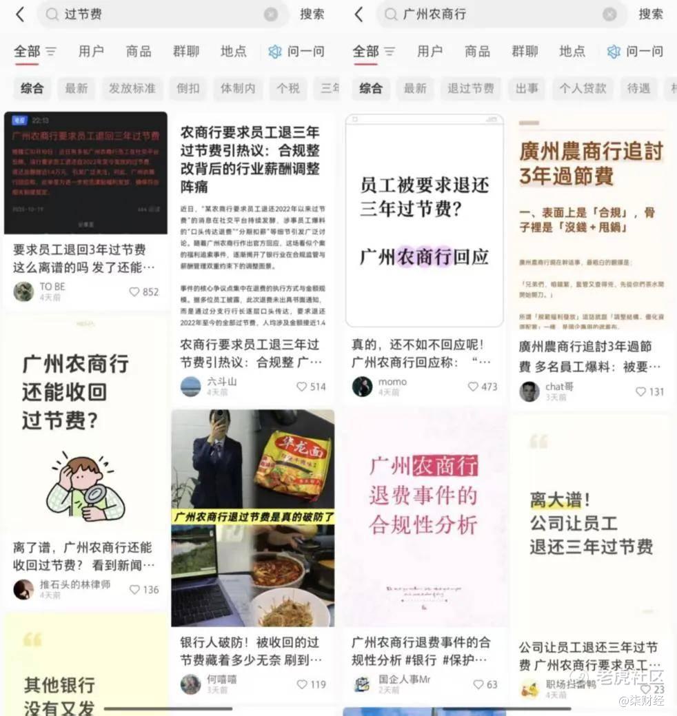 近日,多名广州农商行员工在社交平台反映,该行要求员工退还自2022年至今发放的过节费,每个人涉及的金额从1.2万元到1.5万元不等,具体数额根据岗位职级略有差异,基层员工普遍在1.4万元左右。