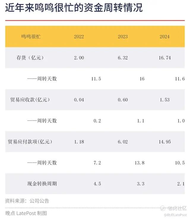 - 2024 年,在平均存货、存货周转天数和现金周转天数上,鸣鸣的分别为 11.5 亿元、11.6 天和 2.1 天,万辰则分别为 13.9 亿元、17.6 天和-0.7 天;