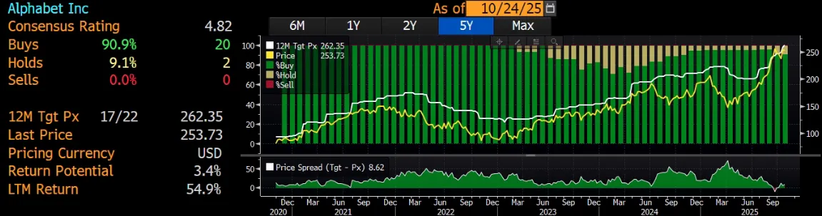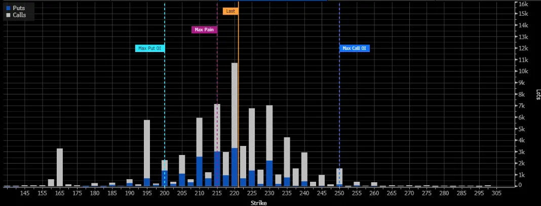 近期股价的震荡走势也折射出对业绩成色的分歧。10月整体波动在210-225美元区间。尽管全年平均价214.32美元,全年微跌0.4%,但机构仍目标价大多在250-270美元。