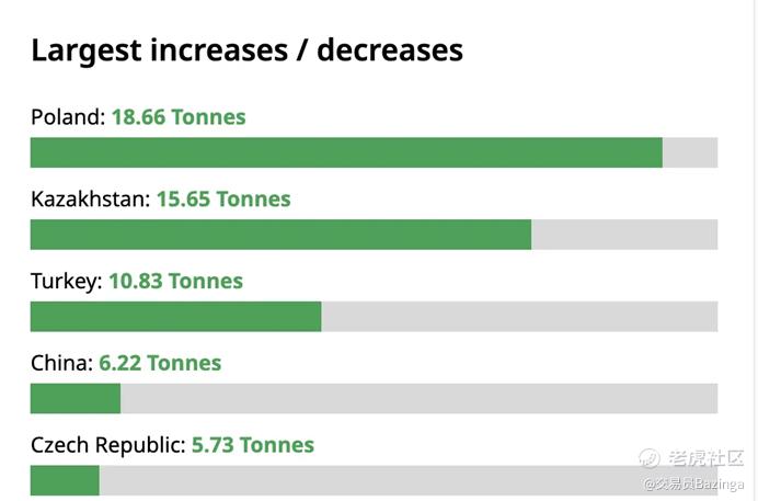根据世界黄金协会公布的 2025 年Q2 数据,波兰一口气增持 18.66 吨,哈萨克斯坦紧追其后,增持 15.65 吨,中国央行稳扎稳打,增持 6.22 吨……