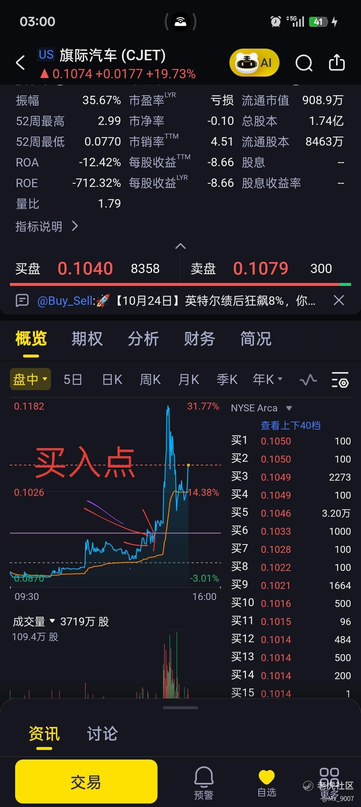 今天有点巧 0.09感觉差不多了 买了就涨起来了