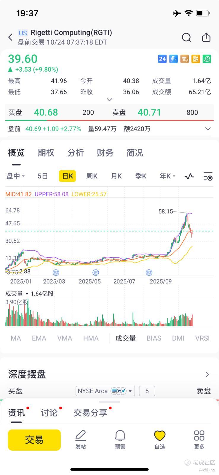 量子计算赛道仍有政策和资金催化,商业化进展是关键,若突破近期高点(RGTI $58,QBTS $46),将打开新一轮上涨空间。若政策预期落空或市场情绪转弱,可能大幅度回落。我看很多分析师们的预测都够大胆的,我自己胆子小,这一波就不跟了,看看戏先。[鬼脸][鬼脸]
