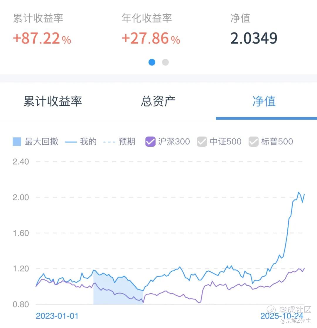 2025 年内沪深 300 指数 上涨 18.44%,2025 年内我的实盘 上涨 69.46%,本年初始净值1.20,本周净值2.03。
