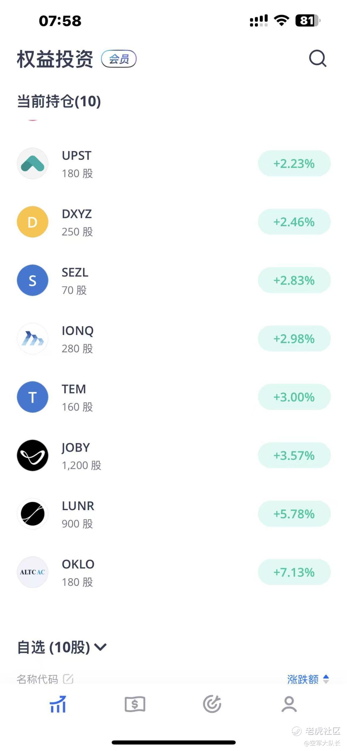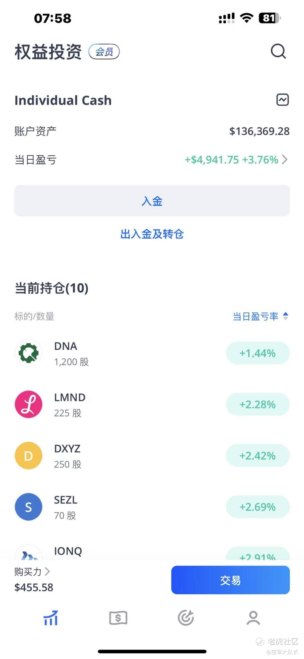 这是我的实盘账户,收益又回到了36%,做成长股就这样,跌起来很快,涨起来也很快,一般人不敢做这些股票,更不敢天天发实盘,我不马后炮,大家可以长期关注我的实盘账户。