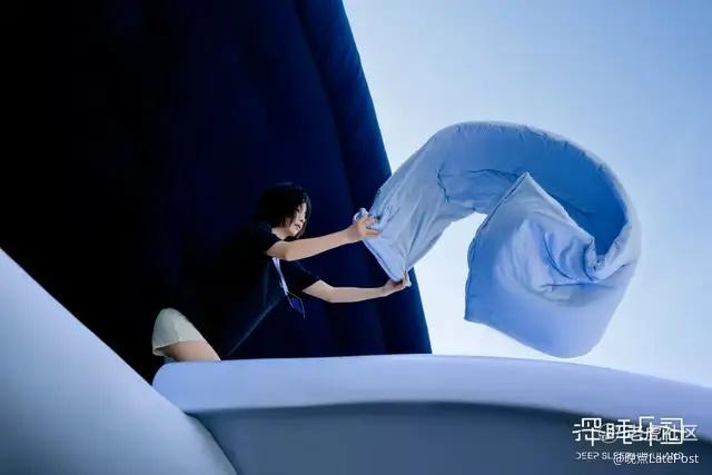 亚朵星球在线下打造的 “深睡乐园”,用蹦蹦床、滑滑梯、拉链小火车、亲肤吊床、海绵迷宫等装置将新产品的核心设计具像化。